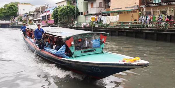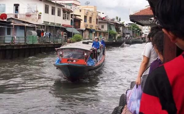 2. 搭在地Khlong Saen Saep Express Boat 快船:由於寶馬市場附近沒有捷運或地鐵,最方便也最經濟的到達方式是搭乘Khlong Saen Saep Express Boat 空盛桑運河快船,很有趣,不過上下船比較危險些,哈)))