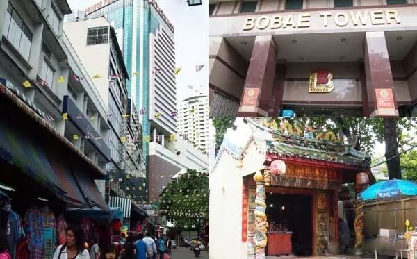 寶馬成衣中心旁邊連在一起的是Prince Palace Hotel 皇都大酒店,還有座本頭公廟( 泰國土地公廟) 。